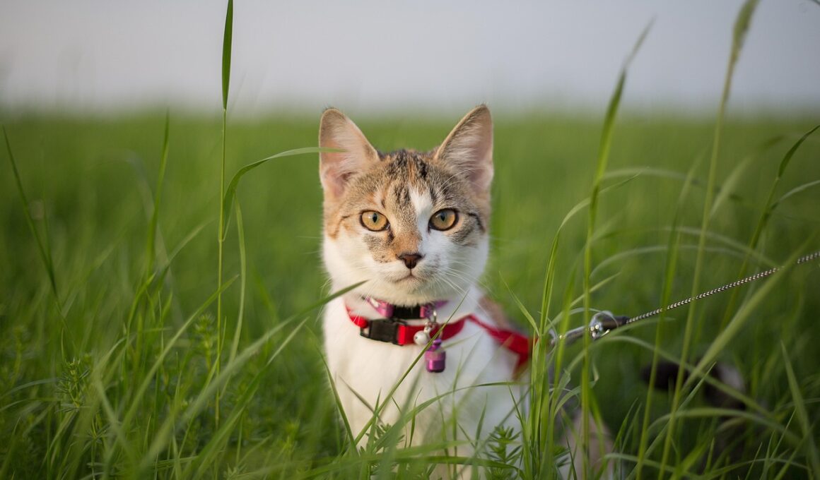 Safety is paramount when harness training your cat for outdoor adventures. Always ensure your cat is wearing a properly fitted harness designed for their size. In addition, regularly check the equipment for signs of wear and tear to prevent it from breaking during use. Familiarize your cat with the gear beforehand, reducing any chances of accidents or injuries. Leashes should have secure clips, allowing for quick attachment and release. Also, consider attaching an ID tag to the harness, including your contact information. This ensures your cat can be returned should they slip out of it during a walk. Training your cat to recognize cues and commands while on the leash can also significantly enhance safety. Teach your cat commands, such as ‘stop’ and ‘come,’ which could be critical in potentially hazardous situations. Pay attention to traffic and environment, keeping your cat close if you encounter strange sounds or sudden movements. Opt for quieter routes away from heavy traffic and use paths where animals can safely explore. Ensuring these precautions create lasting confidence in outdoor experiences for both you and your cat.
