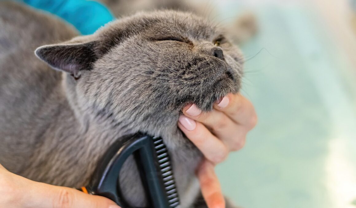 Selecting appropriate tools for grooming senior cats is crucial for a positive experience. Consider grooming brushes with soft bristles or rubber tips, as they are gentle on older skin and help stimulate circulation without causing discomfort. Additionally, using a cat comb can remove tangles or mats more effectively, which is crucial for long-haired breeds. Regularly inspect your grooming tools to ensure they are clean and in good condition to prevent any skin irritations. Furthermore, always have nail clippers specifically designed for cats at hand; maintaining nail length can greatly improve your cat’s mobility. Use cat treats or toys as distractions during grooming to enhance the experience for your feline friend. You can also employ a technique called “hold-and-pet” where you soothe and pet your cat as you groom, maintaining a calm and pleasant atmosphere. For the best results, establish a grooming schedule that accommodates your cat’s age and needs. Regular grooming not only helps manage shedding but also enhances your emotional connection with your senior cat by showing them they are loved and cared for.