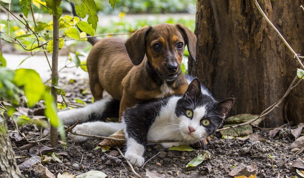 Setting clear routines can help dogs and cats acclimate to one another. Animals thrive on predictability, so maintain consistent schedules for feeding, walks, and playtime. These routines help alleviate anxiety during transitions. When establishing your routine, ensure that time is evenly divided between both pets, so neither feels neglected. Gradual inclusion of the new pet into existing routines reinforces their place within the family structure. Additionally, rotating sleeping locations can assist in familiarizing them with each other’s scents without direct exposure. Moreover, designate separate feeding areas to prevent food-related conflicts. Cats often feel vulnerable while eating, and dogs may become possessive over food. Speaking of meals, introducing both pets simultaneously, yet in different areas, creates a relaxed atmosphere. Interactive toys can also serve as a distraction, keeping both animals occupied during tense situations. Training techniques can further nurture their bond. Teach them commands like “sit” or “stay” to redirect their focus towards positive reinforcement. By creating a structured environment, both pets will learn to coexist peacefully possible over time.